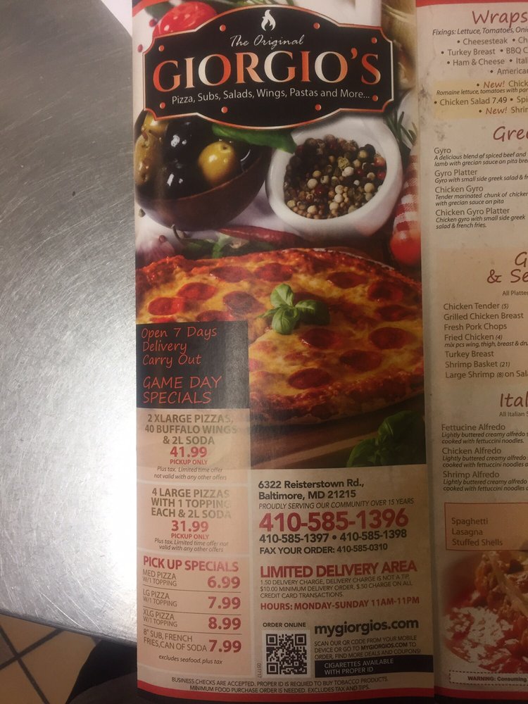 Welcome to Giorgio’s, the heart of Italian cuisine in Baltimore! Located at 6322 Reisterstown Rd, this lively eatery promises an unforgettable experience with its diverse menu offerings, particularly its renowned pizzas and hearty subs.